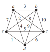 Circuit: a-c-e-b-d-a, Weight = \(8 + 5 + 2 + 9 + 4 = 28\)