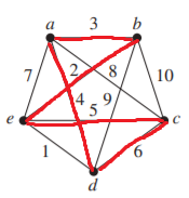 Circuit: a-b-c-d-e-a, Weight = \(3 + 10 + 6 + 1 + 7 = 27\)